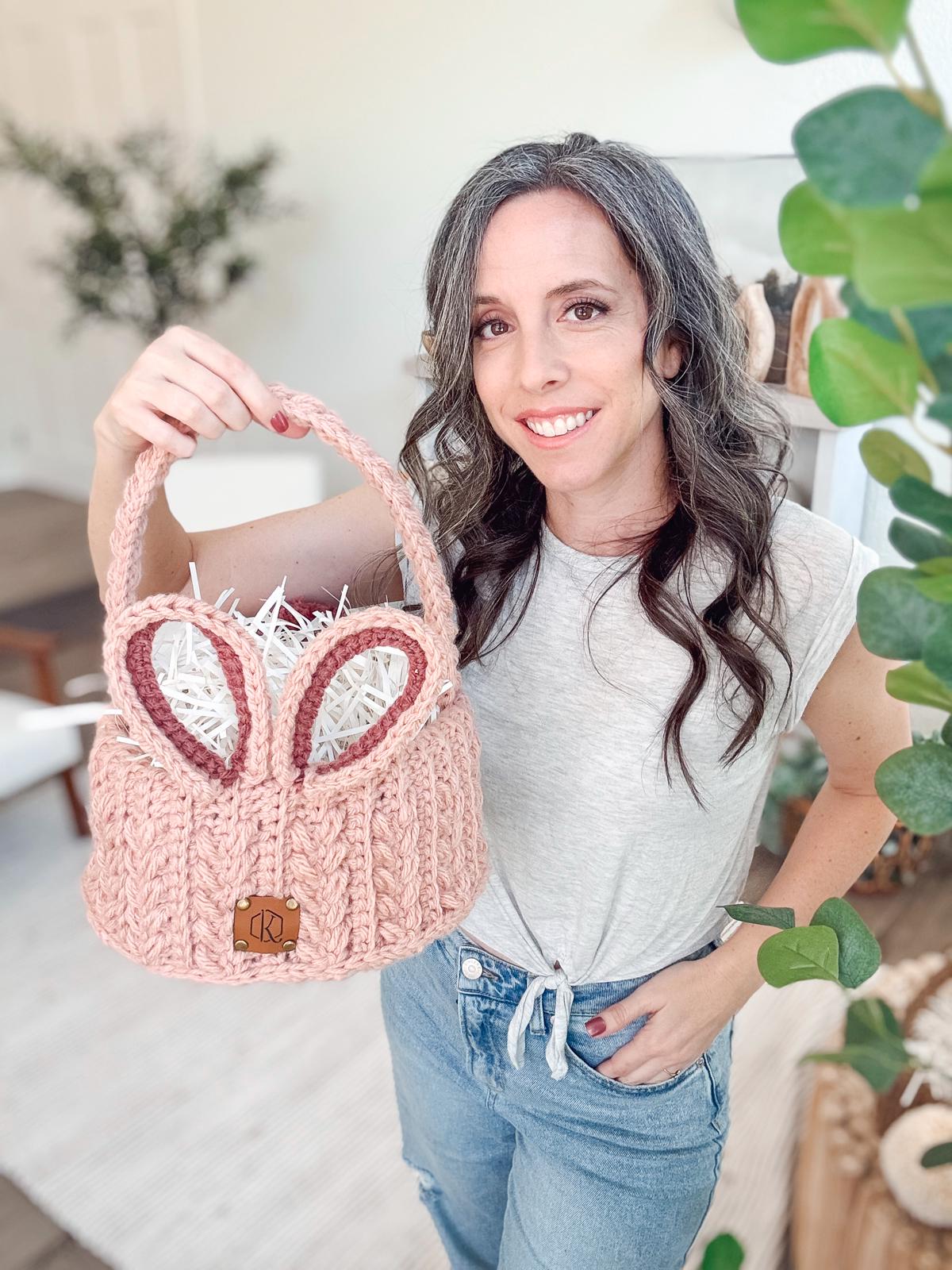 Get ready to welcome spring with the Wheat Stitch Easter Bunny Basket! This charming new pattern features the beautifully textured 4-row repeat Wheat Stitch, making it both simple and fun to create. We’ll start by crafting a sturdy basket bottom in the round. Then, we’ll make the basket body in rows with a fold-over edge for added stability. We’ll end by adding the cutest finishing touches—adorable bunny ears, a fluffy tail, and a sturdy handle. Whether you go for soft pastels, bold brights, or classic neutrals, this basket will look amazing in any color. Perfect for all ages, it’s a delightful way to add handmade charm to Easter celebrations!