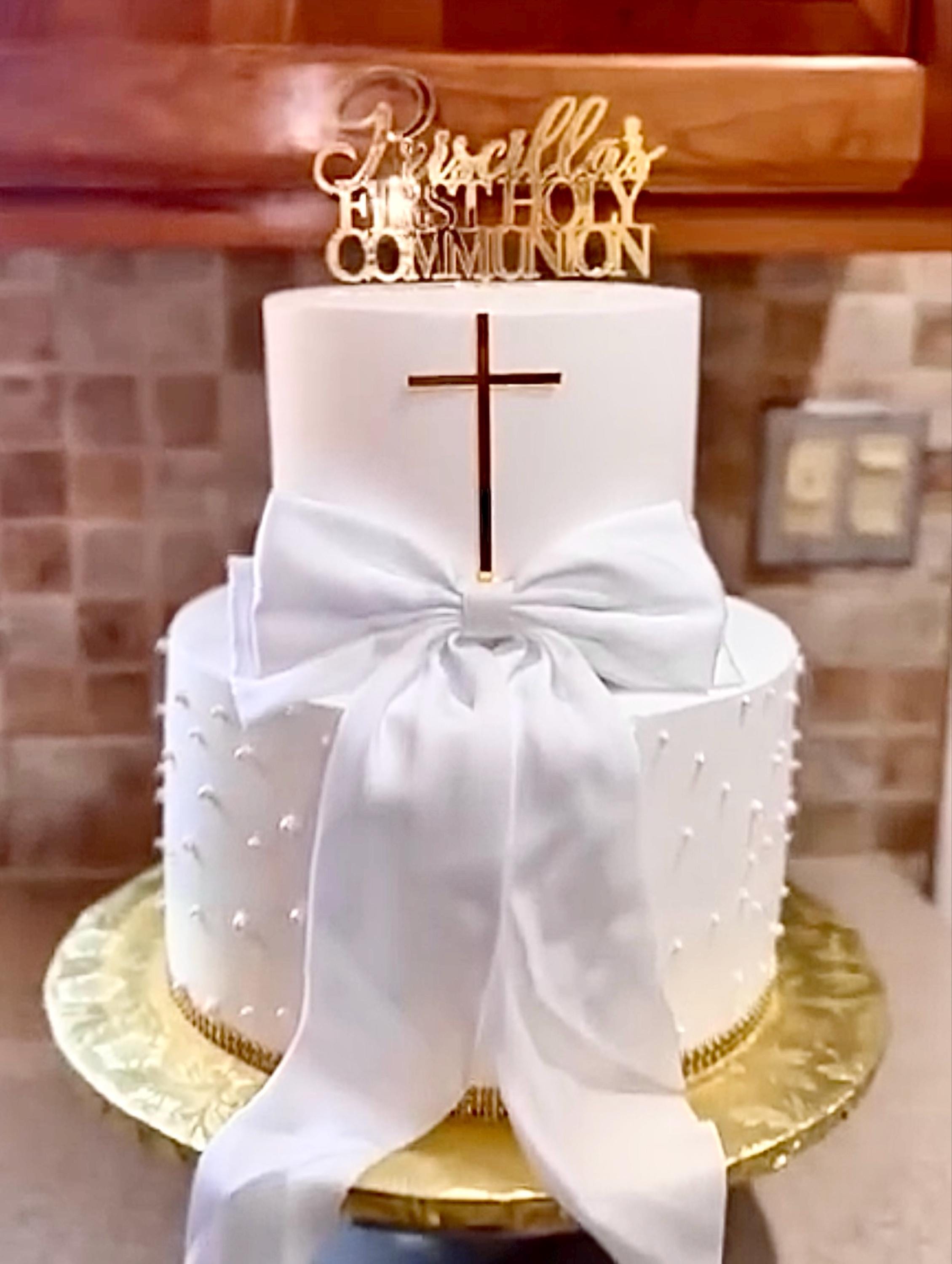 First Holy Communion Personalized Name Acrylic Cake Topper with Cross Communion Christening Confirmation Easter Christian Catholic Union