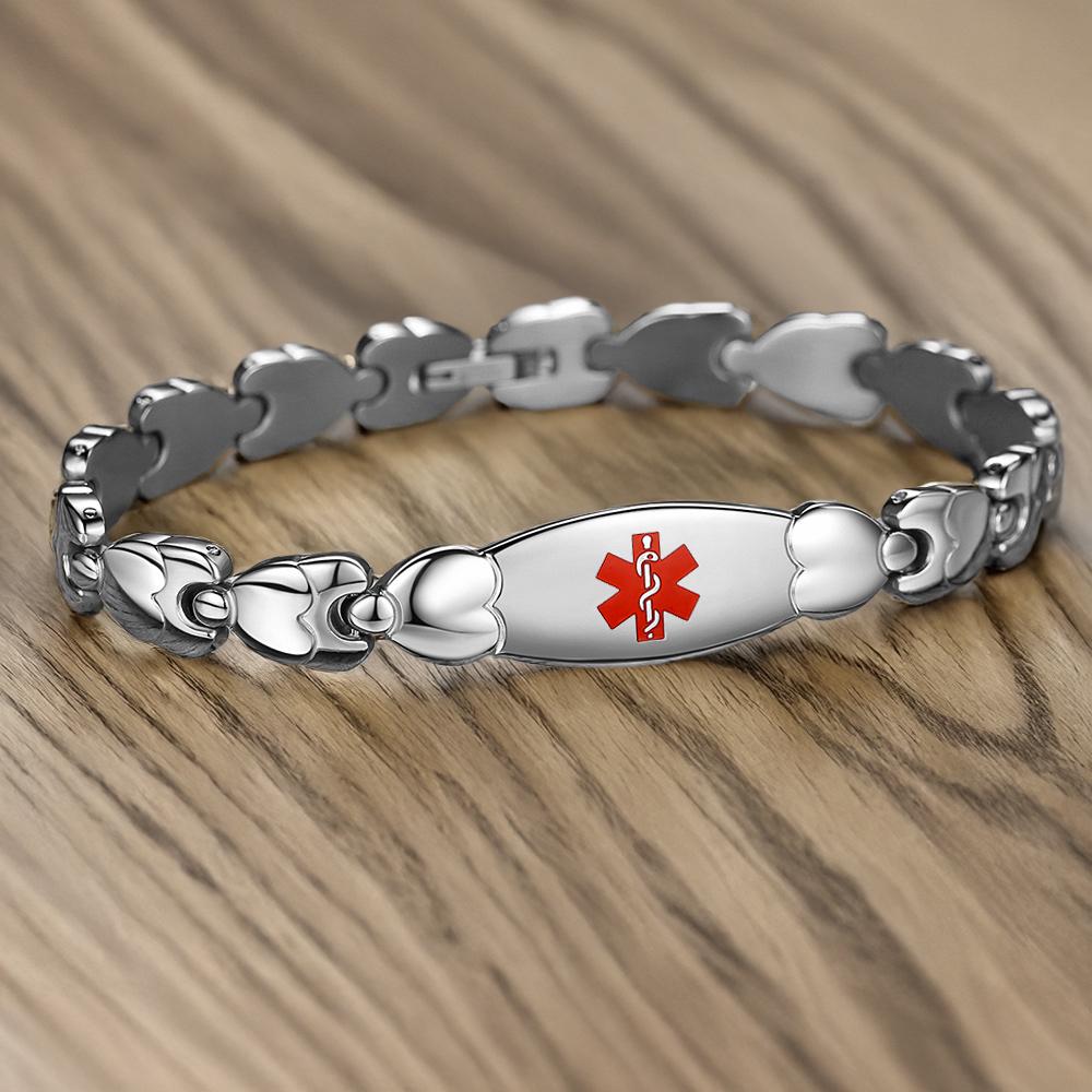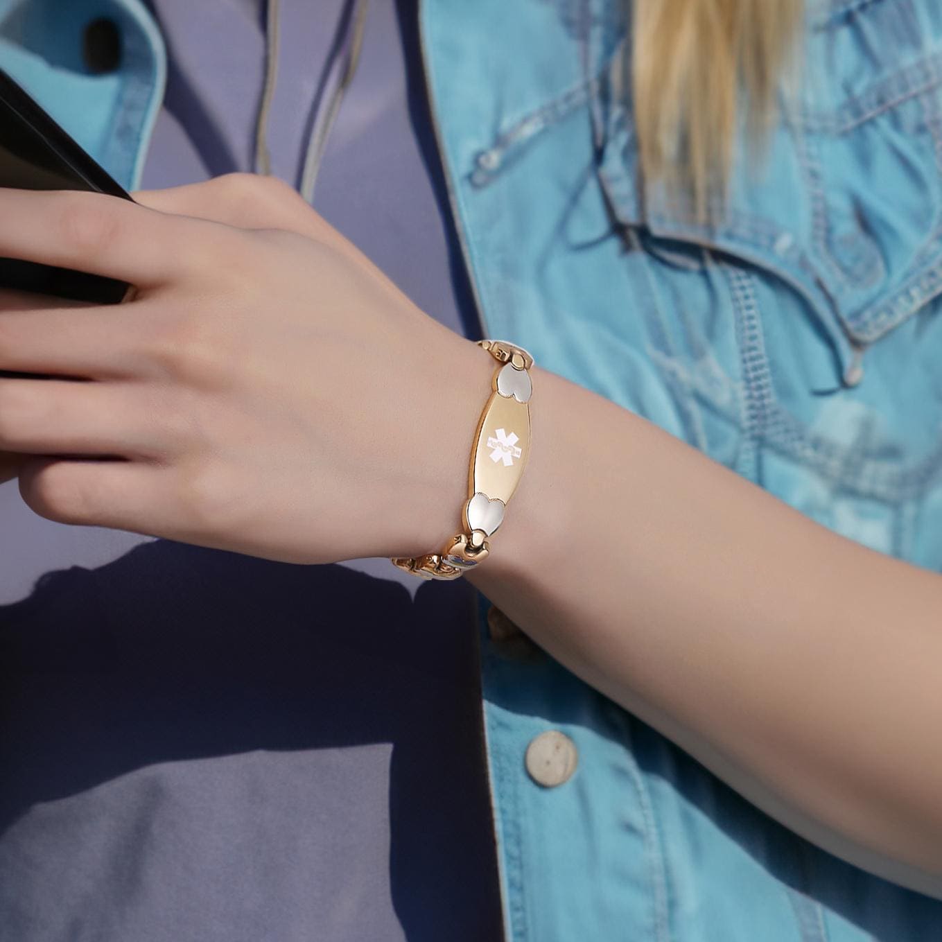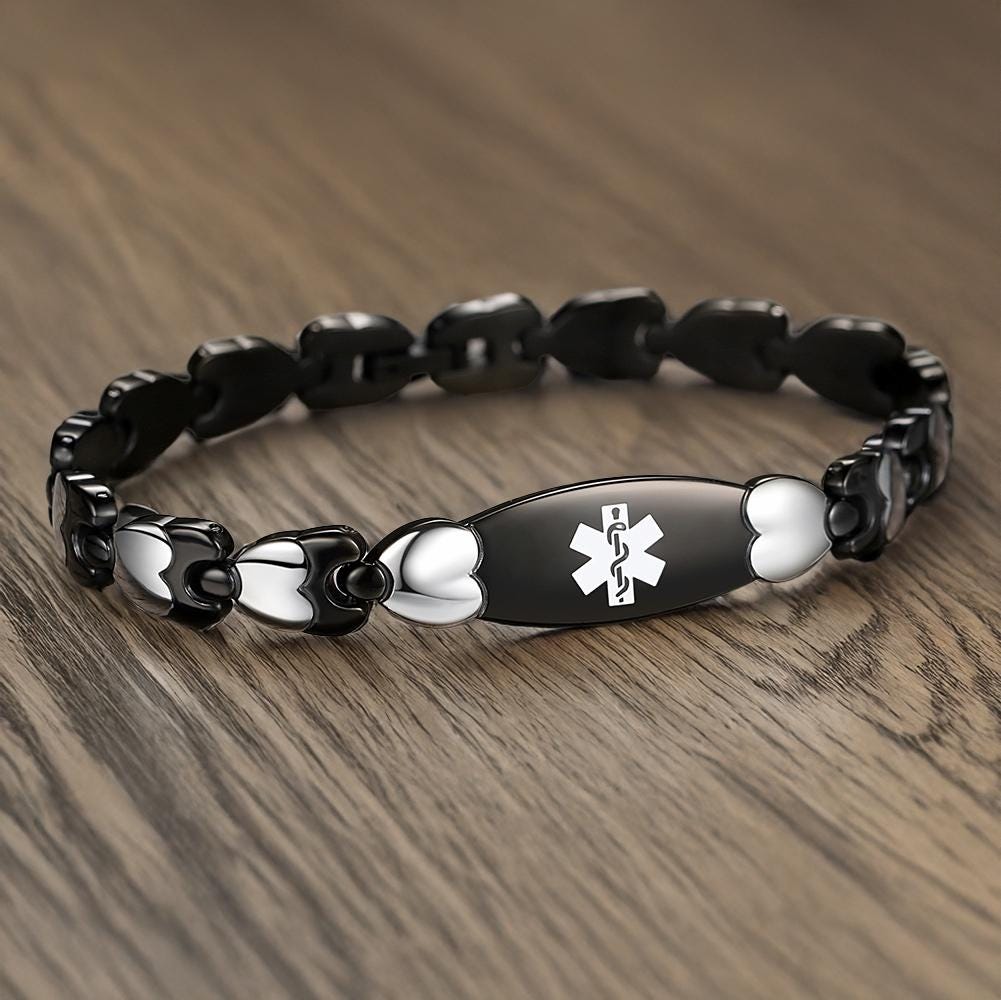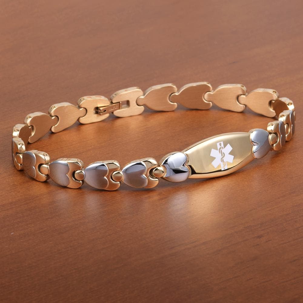 Designed with love and care, our handcrafted medical alert bracelet blends medical alert functionality with delicate beauty. The double heart link design—featuring alternating 14k gold,rose gold-filled and sterling silver hearts—creates a timeless piece that’s as chic as it is essential. Perfect for everyday wear, this bracelet ensures your critical medical information is always close at hand.